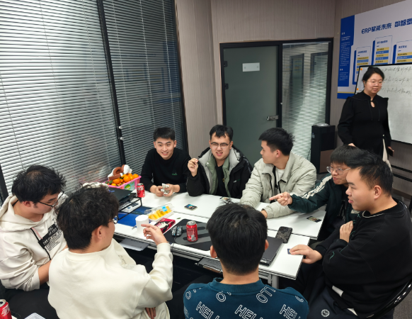 2026年1月1日ERP天津实训基地为紧张学习的学生们提供了一次难得欢乐展现,虽然新年来临但学生们为了不耽误学业和岗前集训的推进,全部在集训基地进行了迎新年活动,基地为学生提供了轻娱乐活动和聚餐,感受团队和基地赋能助力的合作,双向奔赴共同努力。