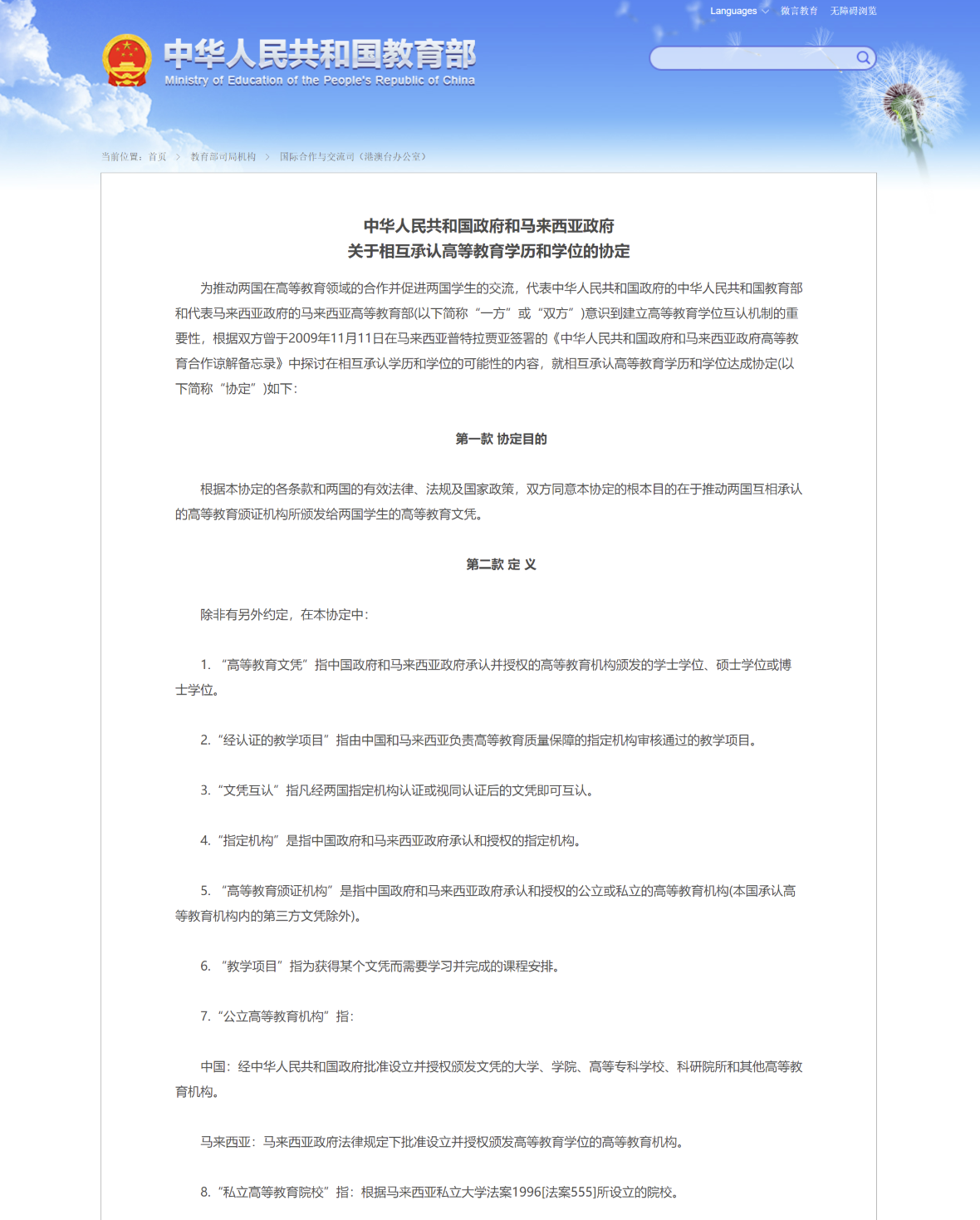 教育部涉外监管信息网首批推荐院校